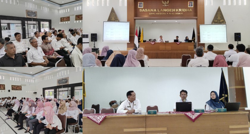 SMK Negeri 1 Kalasan menggelar rapat pembagian tugas mengajar guru pada Rabu, 17 Desember 2025, bertempat di Aula Sasana Langen Kridha, SMK N 1 Kalasan. Rapat ini diikuti oleh kepala sekolah, jajaran wakil kepala sekolah, serta seluruh guru SMK N 1 Kalasan. Agenda utama rapat adalah pembahasan dan penetapan pembagian tugas mengajar untuk semester genap Tahun Aelajaran 2025/2026.